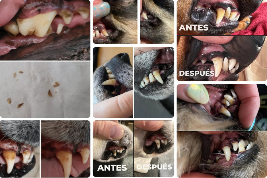 La placa se mineraliza en sarro áspero en cuestión de días, convirtiéndose en un refugio para bacterias dañinas. Si no se trata, provoca mal aliento, y desequilibra la flora bucal de tu perro, permitiendo que las bacterias destructivas irriten sus encías.