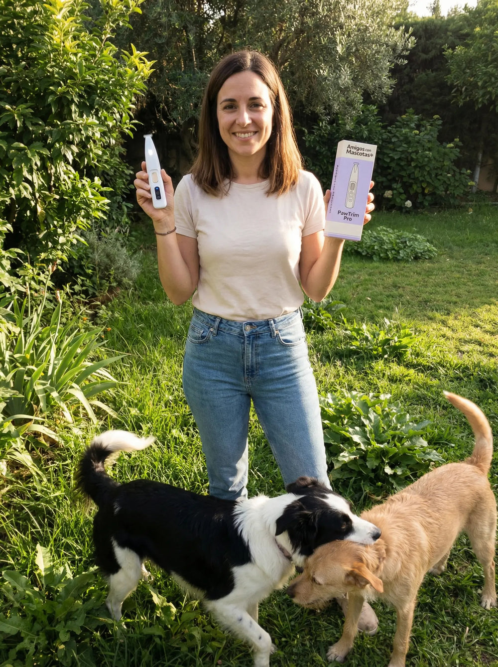 "Siempre pensé que cuidar las patas de mis dos perros era cosa de profesionales, pero este aparatito me ha demostrado que yo también puedo. Es tan segura que no puedo hacerles daño, y tan silenciosa que ninguno se asusta. Ahora lo hago yo en el jardín y nos ahorramos el estrés de la peluquería. Me siento súper orgullosa"